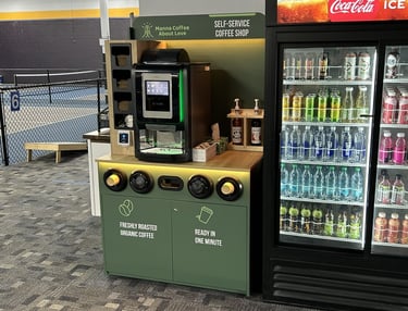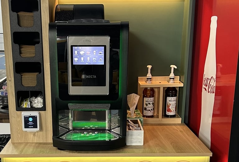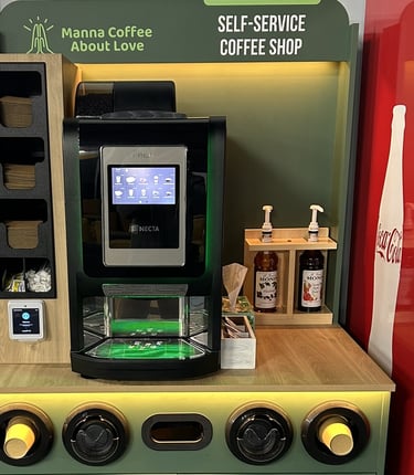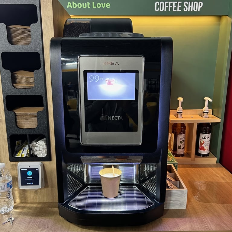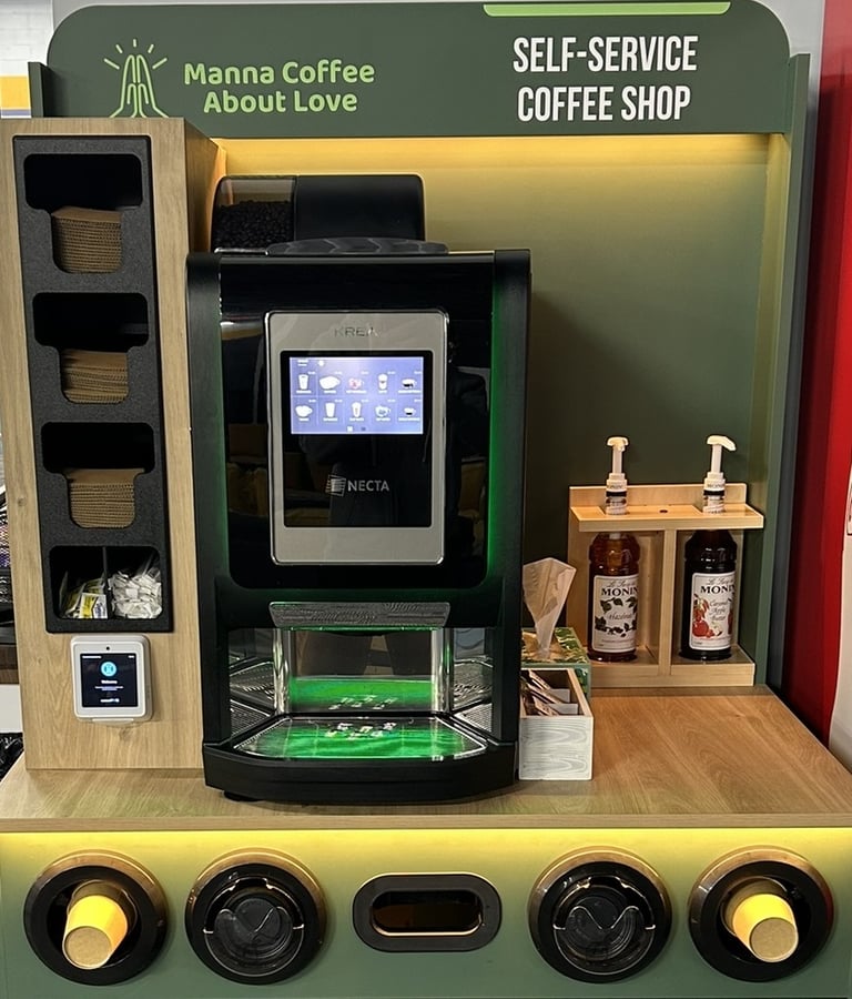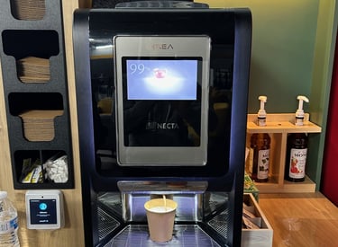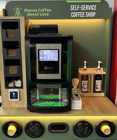 With our self-service kiosks you simply tap, brew, and enjoy.