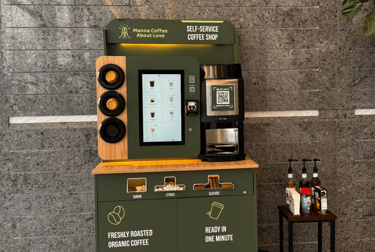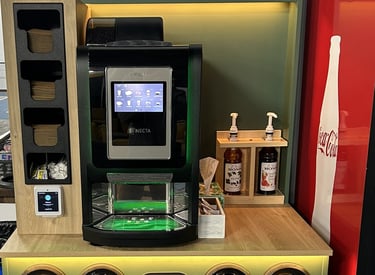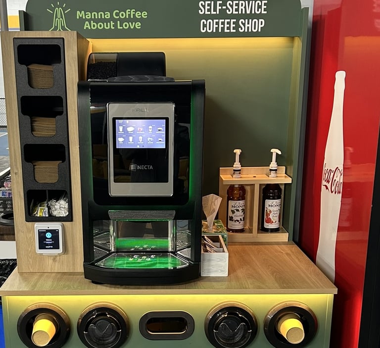 With our self-service kiosks you simply tap, brew, and enjoy.